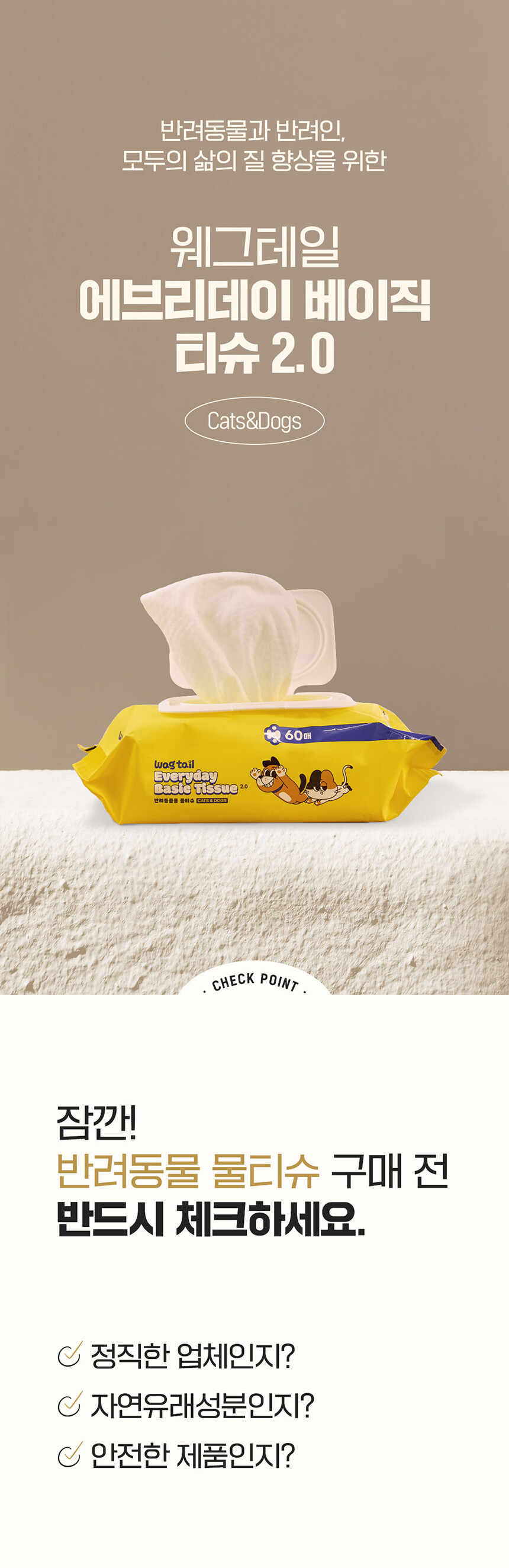 웨그테일 에브리데이 베이직 물티슈 60매
